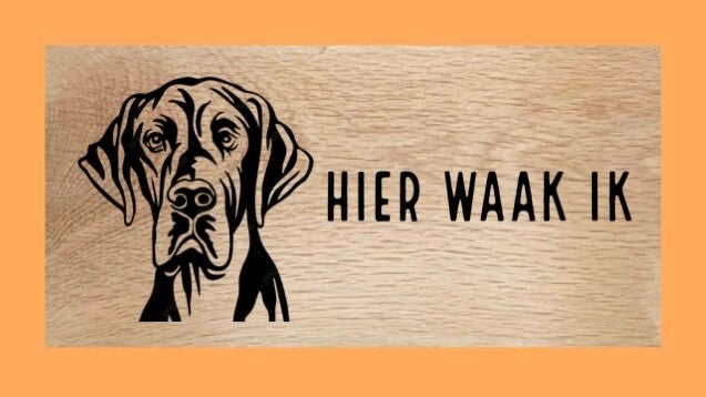 Pyrografie : Deense dog / hier waak ik